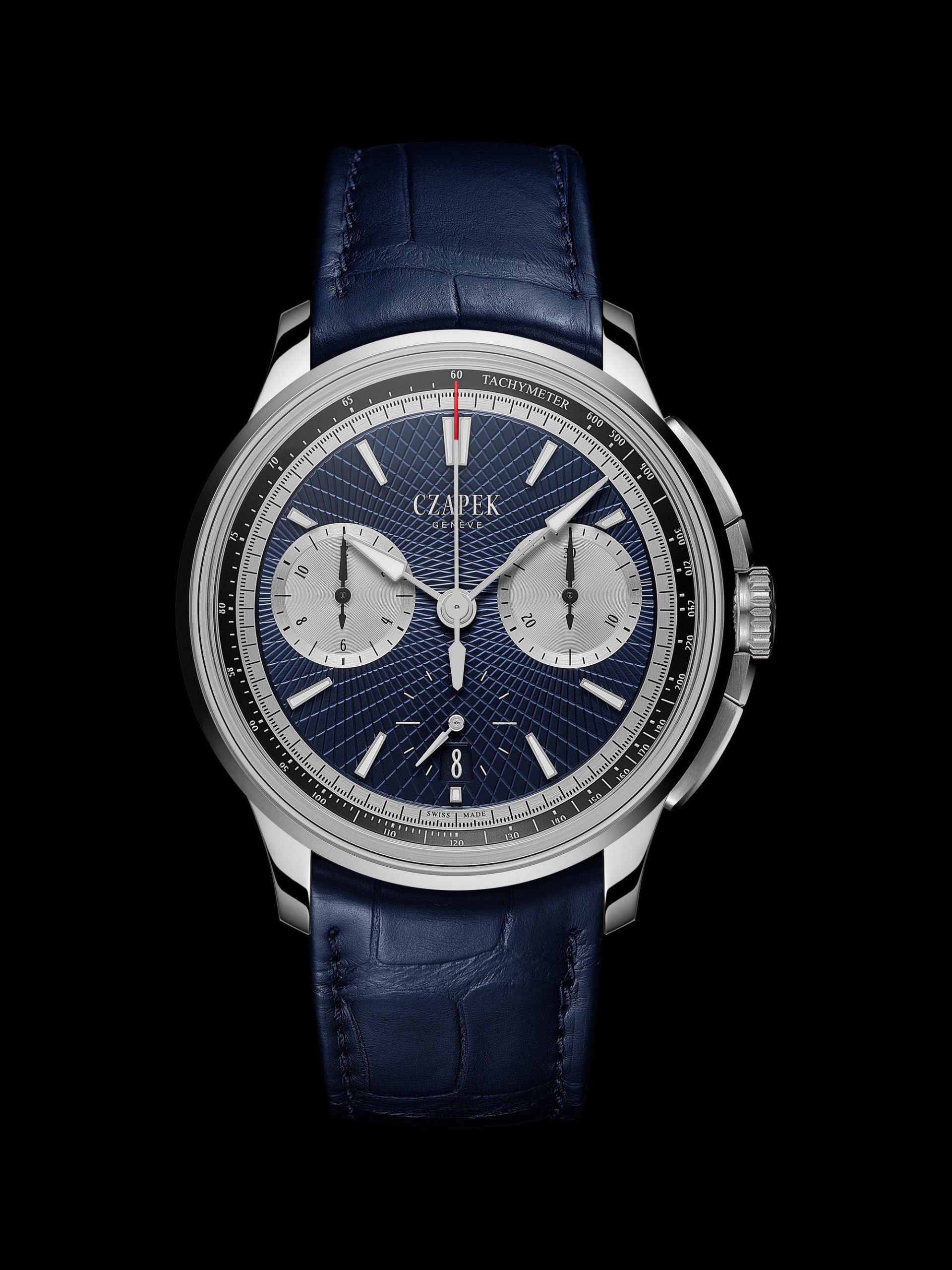 For the guilloché pattern on the dial, Czapek partnered with Metalem to create a modern interpretation of the traditional craft. The new Crossroads pattern, featuring straighter, widely spaced, and deeply etched lines, gives the dial a sportier and more dynamic appearance, with a subtle resemblance to tire treads.