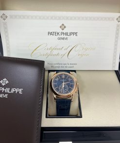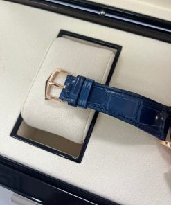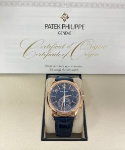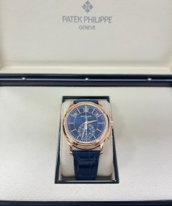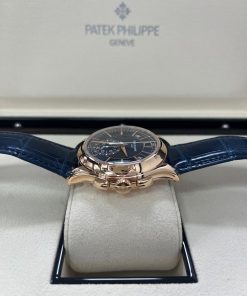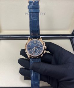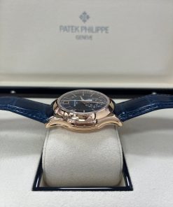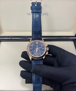 Representing a combination of two popular Patek Philippe complications, the self-winding flyback chronograph with Annual Calendar, Reference 5905, comes in a new rose gold version with a sunburst blue dial – a modern and elegant color accentuating the timeless style of this flagship model.