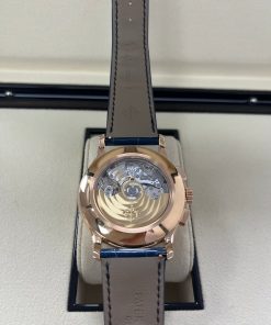 Rose gold. Sapphire crystal case back. Water-resistant to 30 m. Diameter: 42 mm. Height: 14.03 mm.