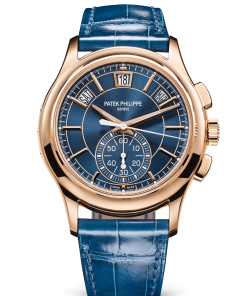 Representing a combination of two popular Patek Philippe complications, the self-winding flyback chronograph with Annual Calendar, Reference 5905, comes in a new rose gold version with a sunburst blue dial – a modern and elegant color accentuating the timeless style of this flagship model.