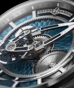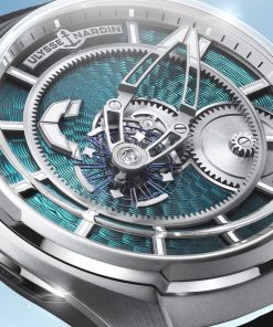 The Freak X Enamel Seddiqi features a distinctive hour disc, made with intricate guilloché and enamel work in “Yas Blue” to capture the Gulf of Arabia’s evening sky. The enamel process, executed by Ulysse Nardin’s artisans, involves multiple layers and precise kiln-firing, adding depth and brilliance to the design.