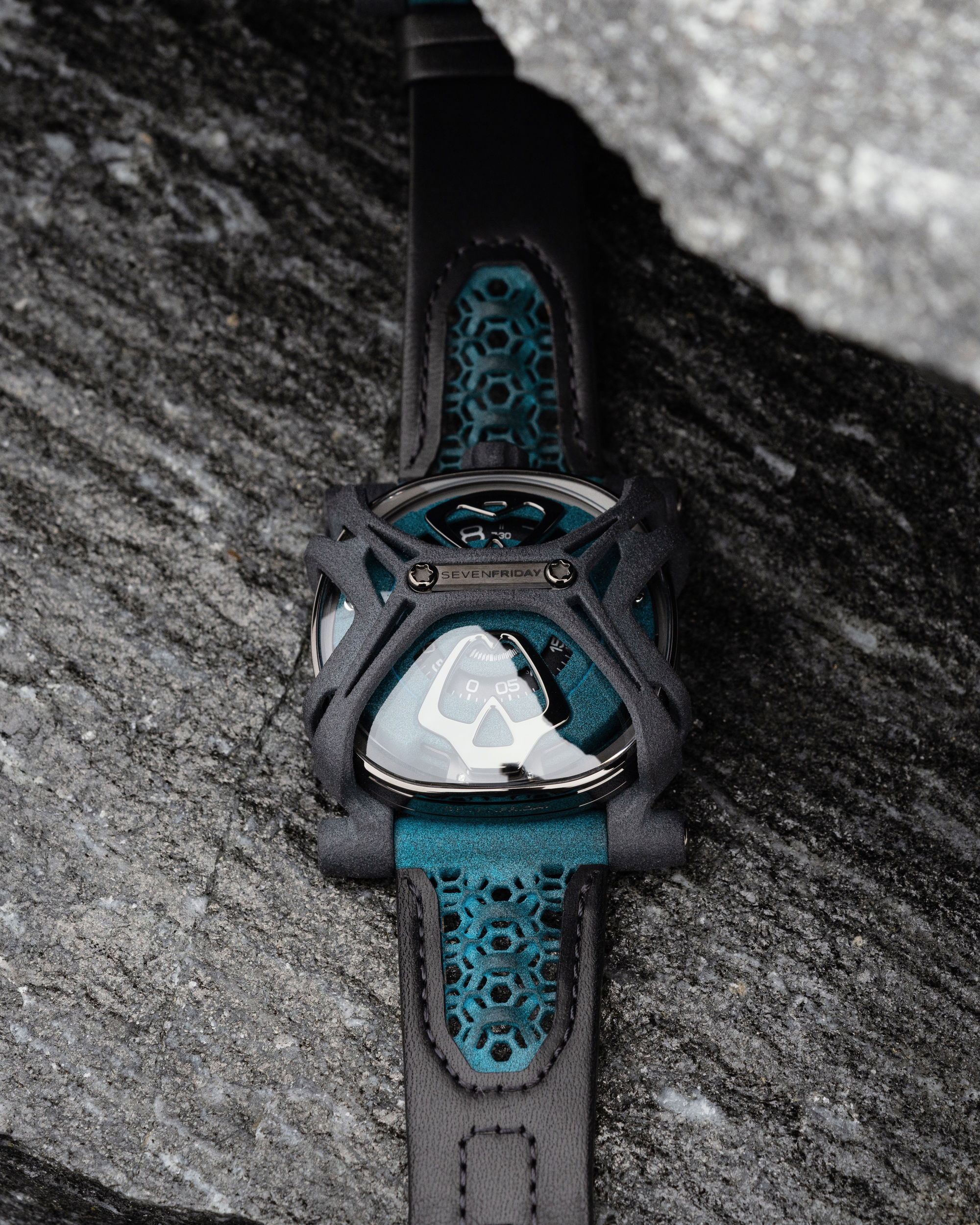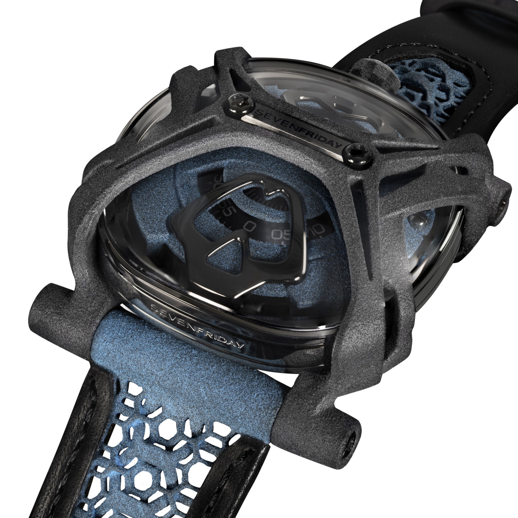 The Free-D distinguishes itself through the use of sustainable and innovative materials, specifically PA11 & PA12, chosen for their lightness, durability, and flexibility. This polyamide, proven in the medical, aerospace, and racing sectors, aligns with SEVENFRIDAY’s ethos of sustainability and exploration of novel construction methods.