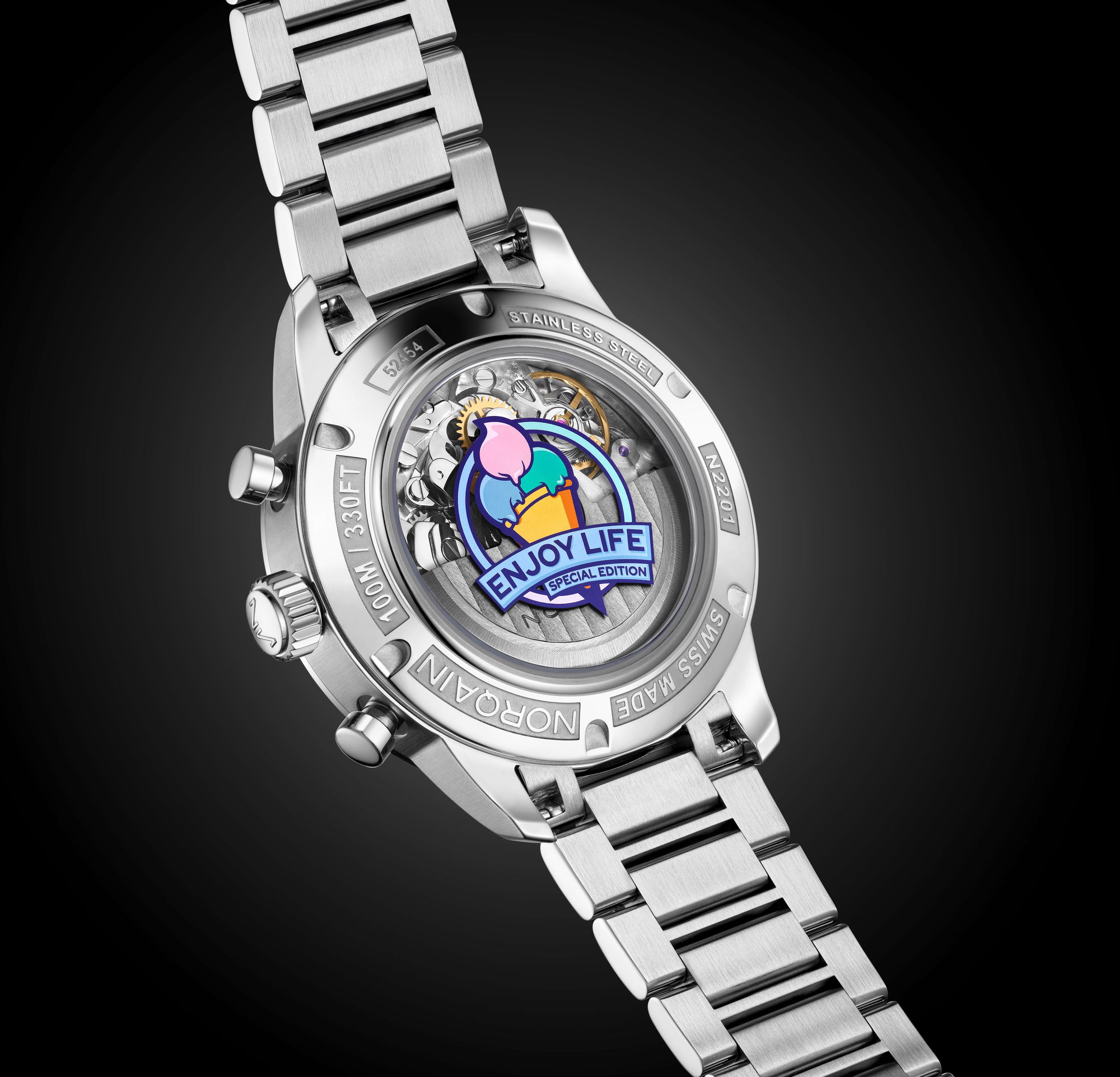 Under the surface, the watch stays true to NORQAIN’s commitment to quality. It runs on the Swiss-made Calibre N19 automatic movement, offering a 62-hour power reserve. Whether worn on a stainless steel bracelet, a white rubber strap, or a brown leather band, the Freedom 60 Chrono “Enjoy Life” is built to inspire joy and radiate positivity in every moment.