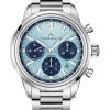 Both models feature a 40mm stainless steel case housing a sunray-finished dial with high-contrast sub-counters and a crisp white tachymeter scale. The Sky Blue version opts for a cooler palette with dark blue registers and an outer ring to match, while the Pistachio edition uses black accents for a punchier, more graphic look. Strap options remain versatile and thoughtful: a stainless steel bracelet for classicists, or NORTIDE linen and Perlon rubber for those drawn to sustainability and texture.