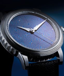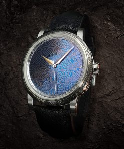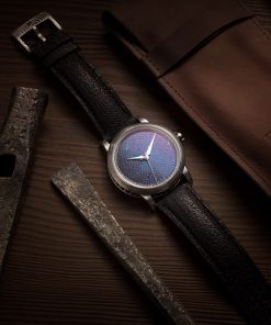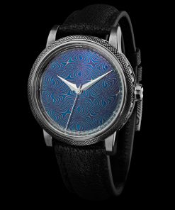 The Fullerö Sword from GoS Watches is a timepiece steeped in Scandinavian heritage, inspired by a remarkably preserved Viking sword unearthed in 1969 near Uppsala. Its Damascus steel dial, hand-forged by Swedish bladesmith Conny Persson, mirrors the ancient pattern-welded core of the original blade. Persson adapts centuries-old forging methods, adding a modern twist with 17-layer rods and fine nickel accents, to make the three dial variations: glowing steel, raw steel, or midnight blue. The result is a rich, organic surface that feels both ancient and undeniably contemporary.