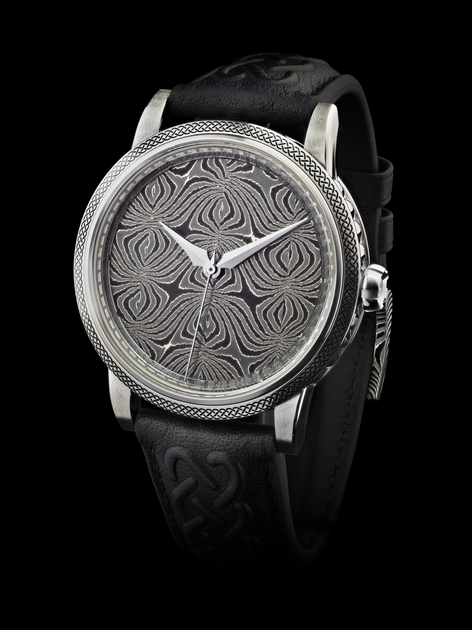 The 41.5mm stainless steel case draws on Viking motifs, with a braided bezel inlaid with enamel and deep grooves along the flanks, adding tactile nuance. A sapphire ring encircles the dial, clear by day and glowing orange at night thanks to GoS’s proprietary 3D Lumicast® technology, a subtle but powerful nod to the heat of the forge. Eschewing applied markers, time is tracked by 12 gaps in the sapphire, keeping the dial open and architectural. GoS’s signature spear-shaped hands and a fine seconds hand complete the composition with a sense of quiet purpose.