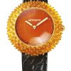 At the heart of the Gentissima Oursin collection is the automatic-winding GG-005, based on the Zenith Elite, a high-performance movement from the renowned Le Locle manufacture de la haute horlogerie. This iteration of the Elite has been customized for the Oursin, with a rotor reshaped in the form of an octagon and bas-relief beads sculpted along the periphery of the mass. The Elite movement, launched around the same time as the historical Oursin in 1994, adds a touch of symmetry and historical significance to these contemporary masterpieces.
