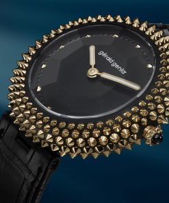 The Gentissima Oursin Punk is distinguished by its extreme tonal contrasts and urbane charisma. This watch features yellow-gold spiked beads projecting from a matt black DLC-coated titanium case, creating a tense visual equilibrium against the gravity-dark dial. This model is the most outspoken of the trio, eschewing diamonds and guilloché for a simplicity that speaks to a modern yearning for Zen-like clarity.