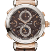 Patek Philippe has reaffirmed its supreme mastery of the music of time by introducing to its current collection a wristwatch featuring a grande sonnerie – the ultimate acoustic function – complemented by a petite sonnerie and minute-repeater. This technical feat is housed in an elegant platinum case with a black Grand Feu enamel dial.
