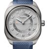 The second model brings fresh vibrancy, with bleu Saint-Cyr numerals energizing a grained grey dial. Its black ceramic bezel alternates satin-brushed and polished finishes, while strap choices in dark grey or bleu Saint-Cyr rubber complete the look. With its bold contrasts and refined details, the Hermès H08 asserts itself as both a contemporary sports watch and a statement of timeless elegance.