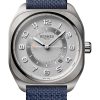 The Hermès H08 embodies a perfect balance of vitality and precision, capturing each moment in tune with the rhythm of its wearer. Modern yet versatile, it combines geometric design with a sporting edge, reflecting Hermès’ masculine universe where sharp lines enhance the sensuality of materials. Its cushion-shaped case sits between round and square, contrasting forms and finishes, titanium and ceramic, satin-brushed, sunburst, and mirror-polished surfaces. All powered by the Manufacture Hermès H1837 automatic movement.