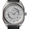 The collection expands with two new titanium editions featuring textured, light-toned dials that display hours, minutes, and seconds. Bold luminescent Arabic numerals, a daring typeface, and a discreet date aperture at 4:30 highlight the watch’s unique design language. The first variation stands out with an orange-tipped seconds hand and offers three strap options: rubber in orange, deep blue, or black for dynamic comfort, or woven webbing in blue or black for subtle sophistication.