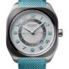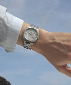 The collection expands with two new titanium editions featuring textured, light-toned dials that display hours, minutes, and seconds. Bold luminescent Arabic numerals, a daring typeface, and a discreet date aperture at 4:30 highlight the watch’s unique design language. The first variation stands out with an orange-tipped seconds hand and offers three strap options: rubber in orange, deep blue, or black for dynamic comfort, or woven webbing in blue or black for subtle sophistication.