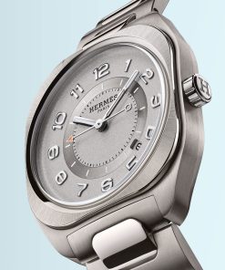 The Hermès H08 embodies a perfect balance of vitality and precision, capturing each moment in tune with the rhythm of its wearer. Modern yet versatile, it combines geometric design with a sporting edge, reflecting Hermès’ masculine universe where sharp lines enhance the sensuality of materials. Its cushion-shaped case sits between round and square, contrasting forms and finishes, titanium and ceramic, satin-brushed, sunburst, and mirror-polished surfaces. All powered by the Manufacture Hermès H1837 automatic movement.