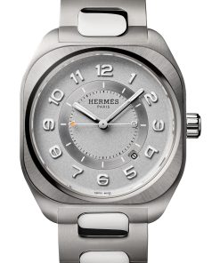The Hermès H08 embodies a perfect balance of vitality and precision, capturing each moment in tune with the rhythm of its wearer. Modern yet versatile, it combines geometric design with a sporting edge, reflecting Hermès’ masculine universe where sharp lines enhance the sensuality of materials. Its cushion-shaped case sits between round and square, contrasting forms and finishes, titanium and ceramic, satin-brushed, sunburst, and mirror-polished surfaces. All powered by the Manufacture Hermès H1837 automatic movement.