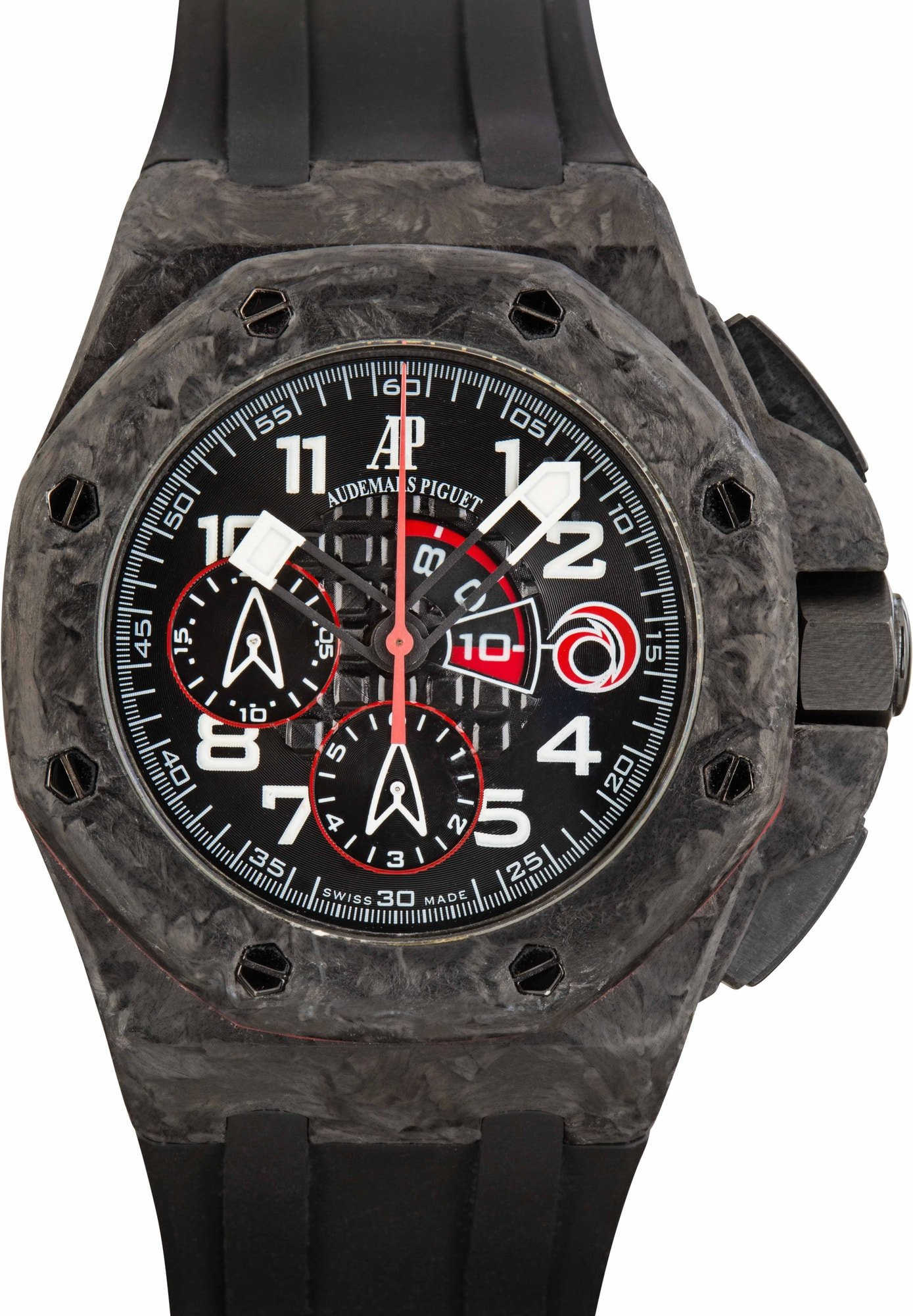 This Audemars Piguet Royal Oak Offshore Chronograph ref 26062.FS.OO.A002.CA.01 (2007) is a striking limited-edition timepiece, crafted in forged carbon with a bold 44mm case and iconic black dial. Featuring a precise automatic chronograph movement and sporty black rubber strap, it combines cutting-edge materials with classic Offshore design. A rare and collectible watch that makes a powerful statement on the wrist.