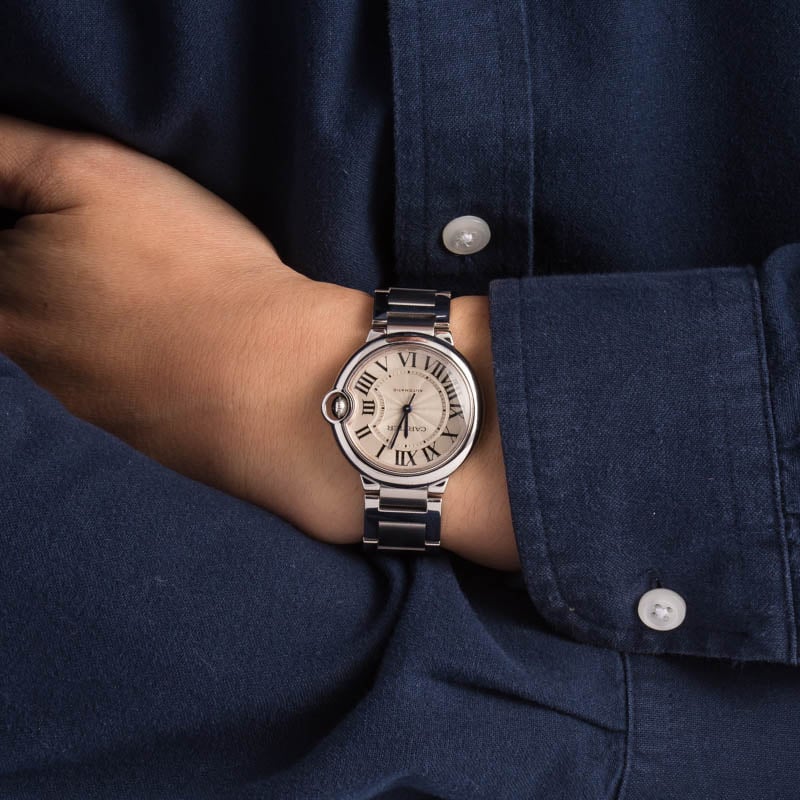 HandMade The Ballon Bleu De Cartier Stainless Steel Silver Dial