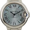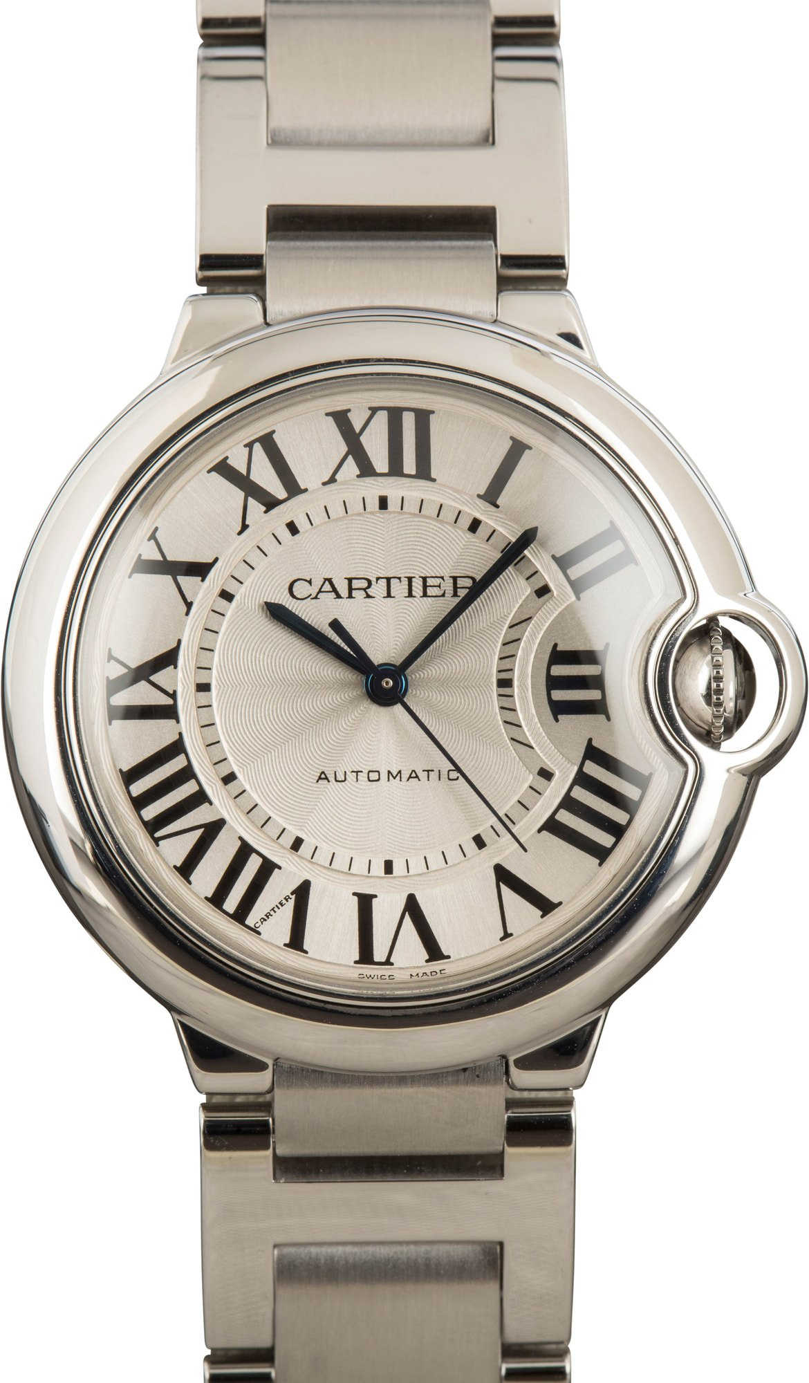 This Ballon Bleu de Cartier ref W6920046 is an exquisite dress watch that combines timeless elegance with refined craftsmanship. The 36mm stainless steel case, paired with a smooth steel bezel, gives it a sleek and sophisticated appearance. The silver guilloché dial, adorned with Roman numerals and tempered blue hands, offers a classic aesthetic while ensuring easy readability. Powered by the automatic Cartier Caliber 076 movement, it boasts a 38-hour power reserve and operates at a frequency of 28,800 bph. With a water resistance of 30 meters and a comfortable 18mm lug width, this watch fits up to a 6.25″ wrist, making it a perfect blend of style, practicality, and comfort for everyday wear and formal occasions alike.
