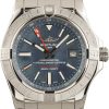 This Breitling Avenger II GMT ref. A3239011/BC34 (2015) features a 43mm stainless steel case and matching bracelet, built for robust performance. Its black index dial includes a date window at 3 o’clock and an additional red GMT hand for tracking a second time zone. A unidirectional timing bezel and large luminous markers enhance functionality, while the COSC-certified Breitling Caliber 32 ensures precise and reliable timekeeping, making this a versatile tool watch for global travelers.