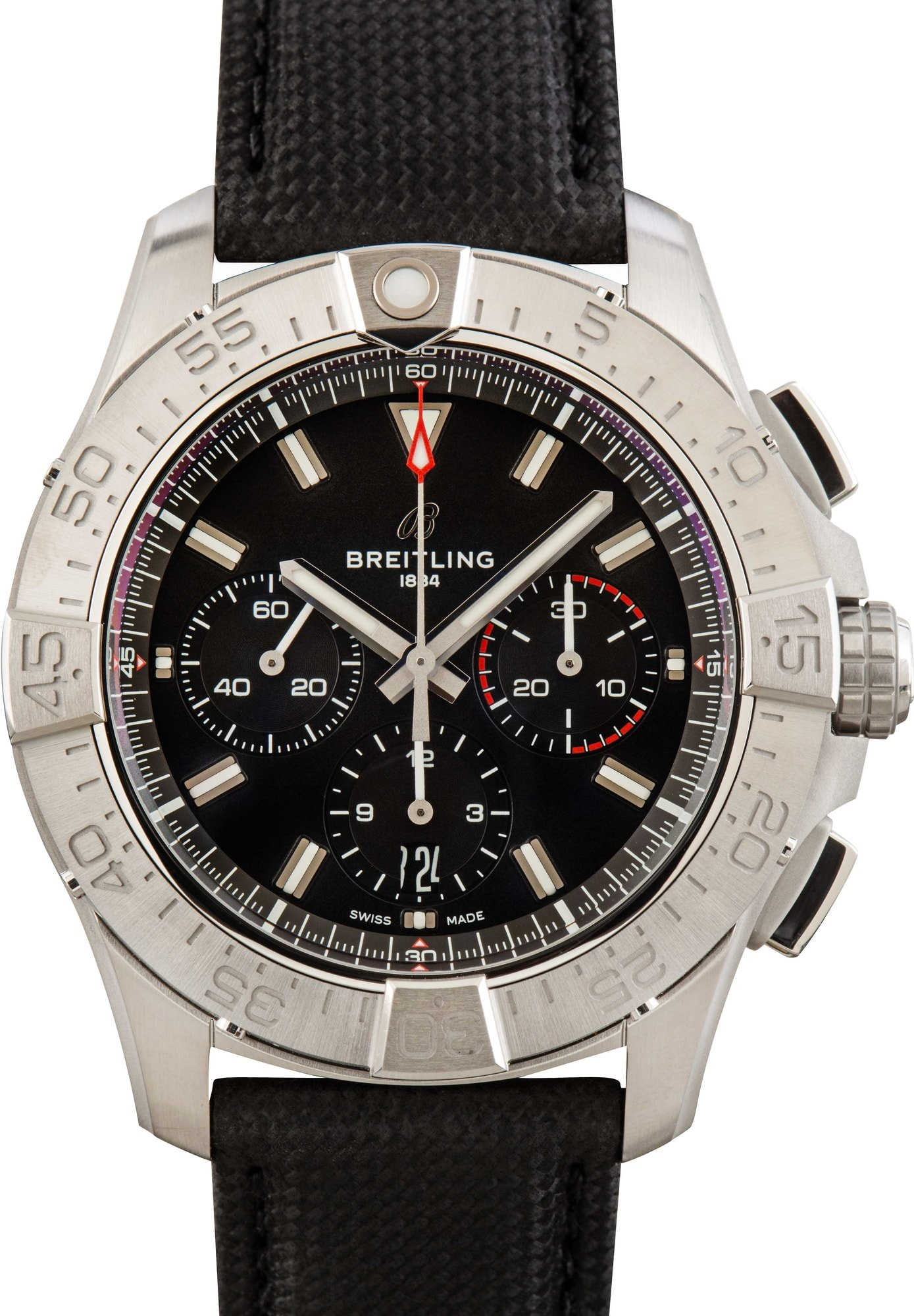 Built for adventure and engineered with precision, this /unworn Breitling Avenger B01 Chronograph 44 ref. AB0147101B1X1 is a bold, aviation-inspired timepiece powered by the in-house Breitling 01 movement, offering an impressive 70-hour power reserve and chronograph functions accurate to a quarter of a second. The 44mm stainless steel case is rugged and reliable, featuring a unidirectional ratcheted bezel, screw-down crown, sapphire caseback, and water resistance up to 300 meters. Paired with an anthracite leather strap and folding clasp, this watch strikes the perfect balance between military-grade toughness and everyday wearability—making it a standout choice for those who value both performance and presence on the wrist.