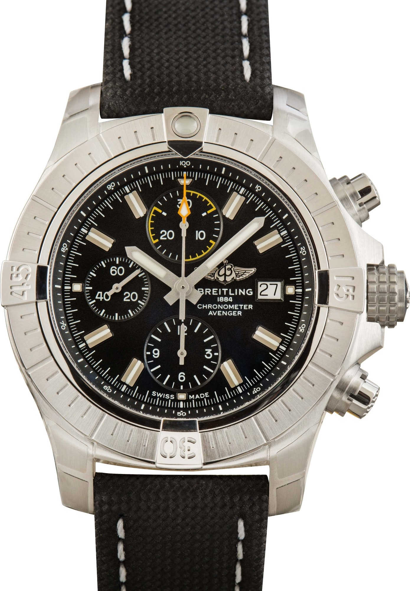 Commanding presence meets precision engineering in this /unworn Breitling Avenger Chronograph 45, ref. A13317101B1X1. Built for adventurers, this robust timepiece features a 45mm stainless steel case, a unidirectional ratcheted bezel, and water resistance up to 300 meters (1,000 feet). Powered by the Breitling 13 caliber, it offers a self-winding mechanical movement with a 48-hour power reserve and a chronograph function measuring 1/4th second, 30 minutes, and 12 hours. The anthracite leather strap adds a touch of sophistication, perfectly complementing the bold design. Whether conquering land, sea, or sky, this Avenger stands ready to impress.