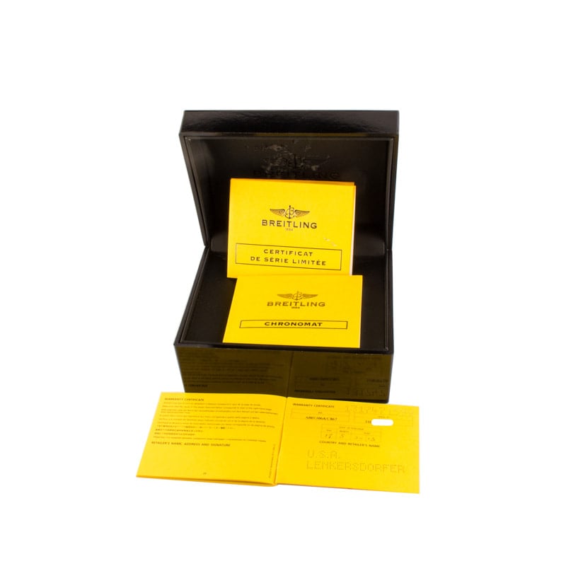 Watch Details Brand: Breitling Model Name: Chronomat Model Number: AB0110 Year: 2012 Item Number: 175630 Condition: Excellent Gender: Mens Box & Papers: Box and Papers