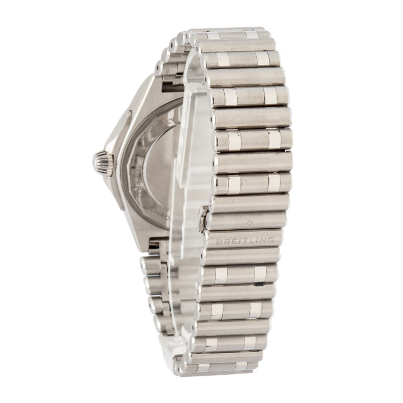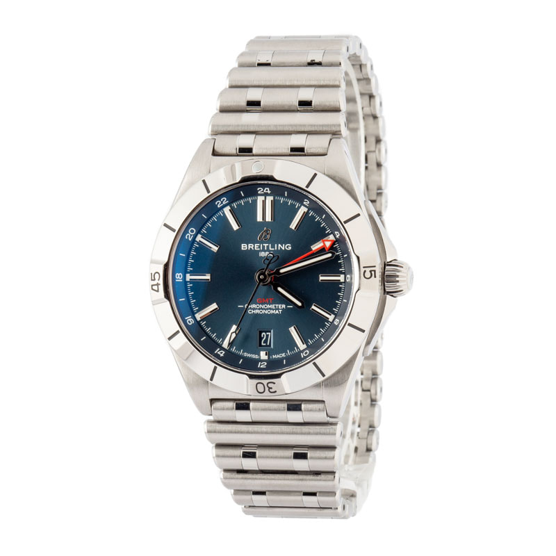 This Breitling Chronomat Automatic GMT 40 ref. A32398101C1A1 (2023) combines practical travel features with refined everyday wear in a 40mm stainless steel case. The deep blue index dial includes a date window at 6 o’clock and is paired with a brushed steel timing bezel for added functionality. Powered by the COSC-certified Breitling Caliber 32, it provides dual time zone capability, all while maintaining a sleek, polished look on a matching stainless steel bracelet.