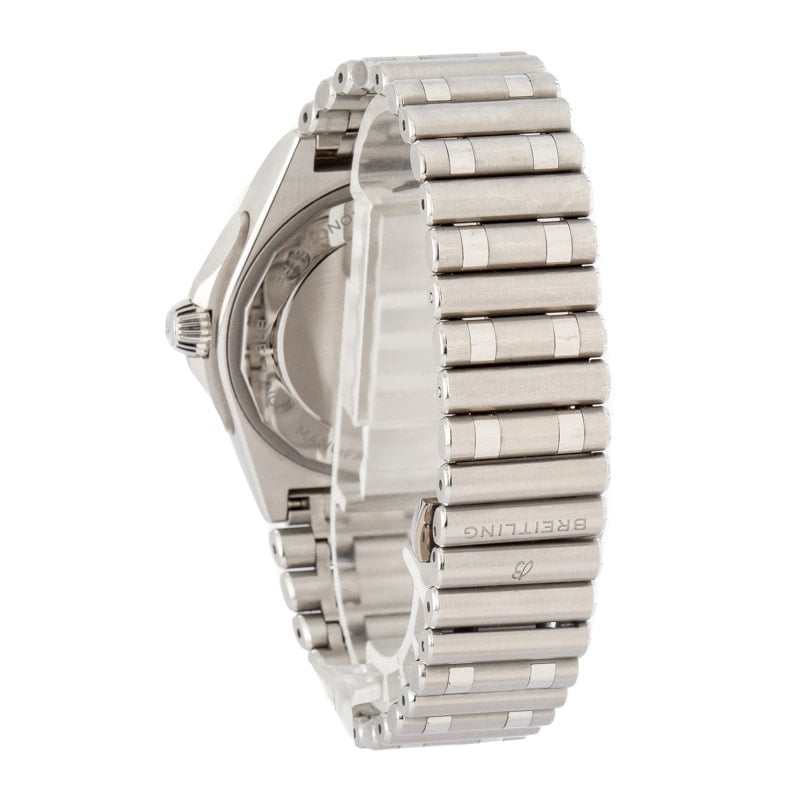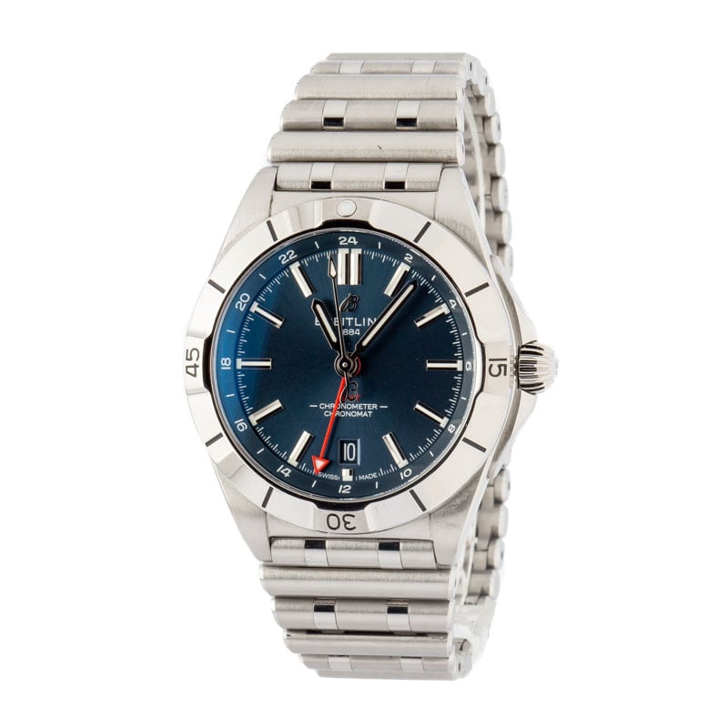 This Breitling Chronomat Automatic GMT 40 ref. A32398101C1A1 (2025) delivers everyday versatility with travel-ready functionality in a 40mm stainless steel case. Its deep blue index dial is cleanly laid out, featuring a date window at 6 o’clock and paired with a brushed steel timing bezel for added utility. Powered by the COSC-certified Breitling Caliber 32, it offers dual time zone tracking while maintaining a sleek profile, all complemented by a matching stainless steel bracelet.