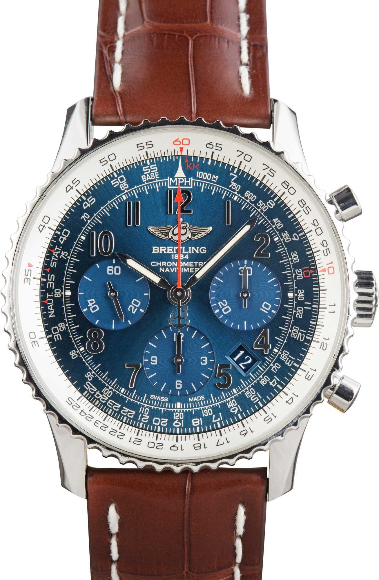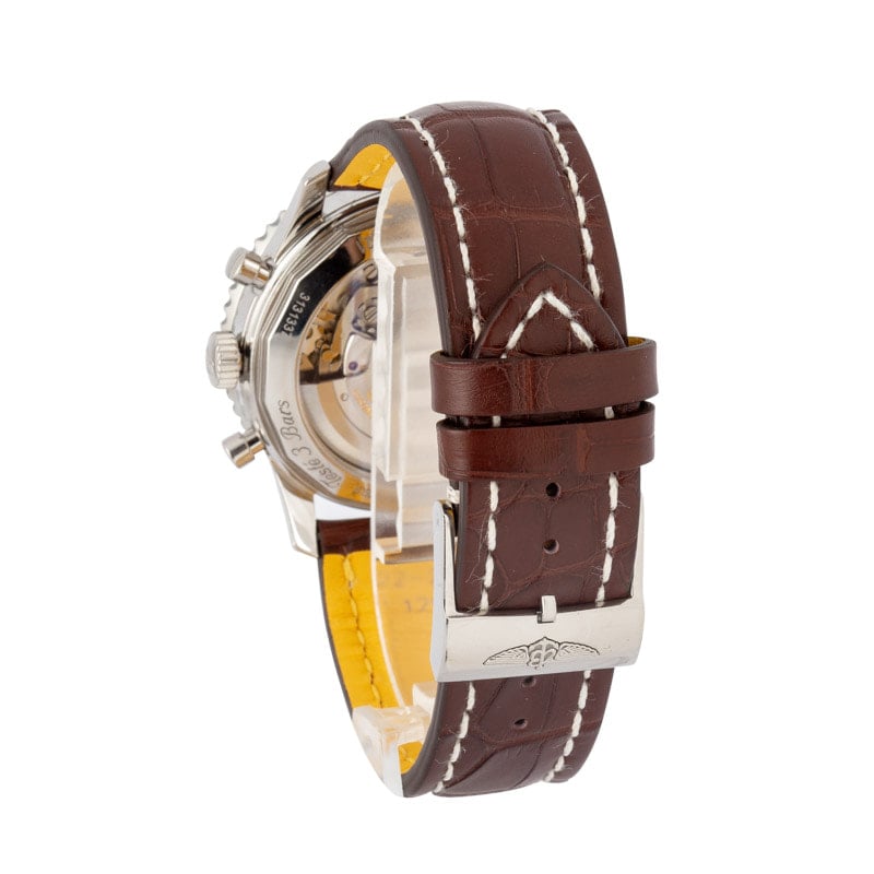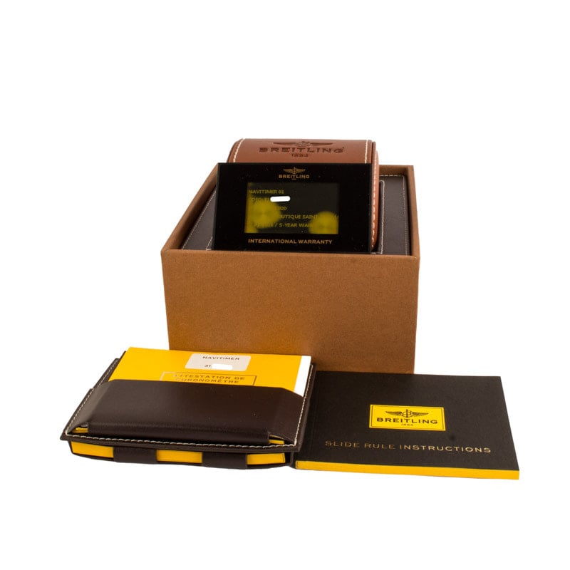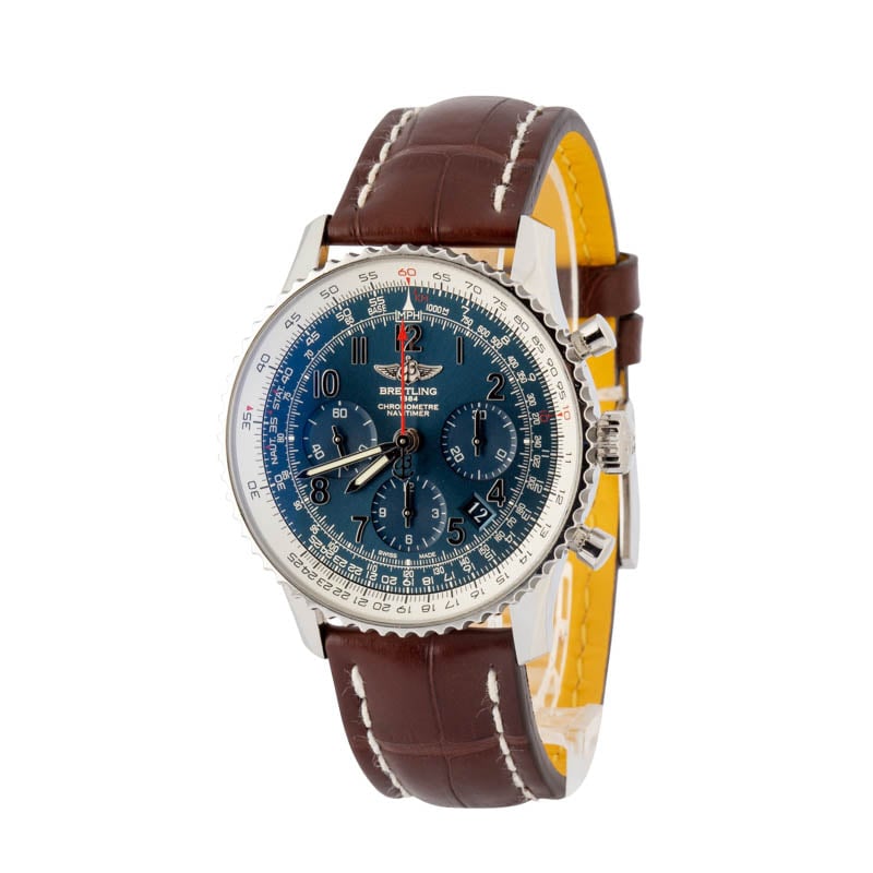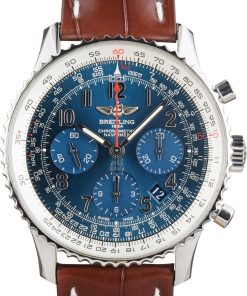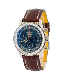 This Breitling Navitimer ref. AB0121C4/C920 (2016) is a limited edition model featuring a 43mm stainless steel case with the signature slide rule bezel. The blue dial is detailed with Arabic numerals, three chronograph subdials, and a date window at 4:30, offering a functional and balanced layout. Powered by the in-house Breitling B01 automatic movement, it delivers precise chronograph performance. Finished with a brown leather strap, this Navitimer combines aviation heritage, limited edition exclusivity, and everyday elegance.