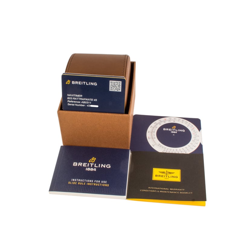 Watch Details Brand: Breitling Model Name: Navitimer Model Number: AB0311211G1P1 Year: 2019 Item Number: 172392 Condition: Excellent Gender: Mens Box & Papers: Box and Papers