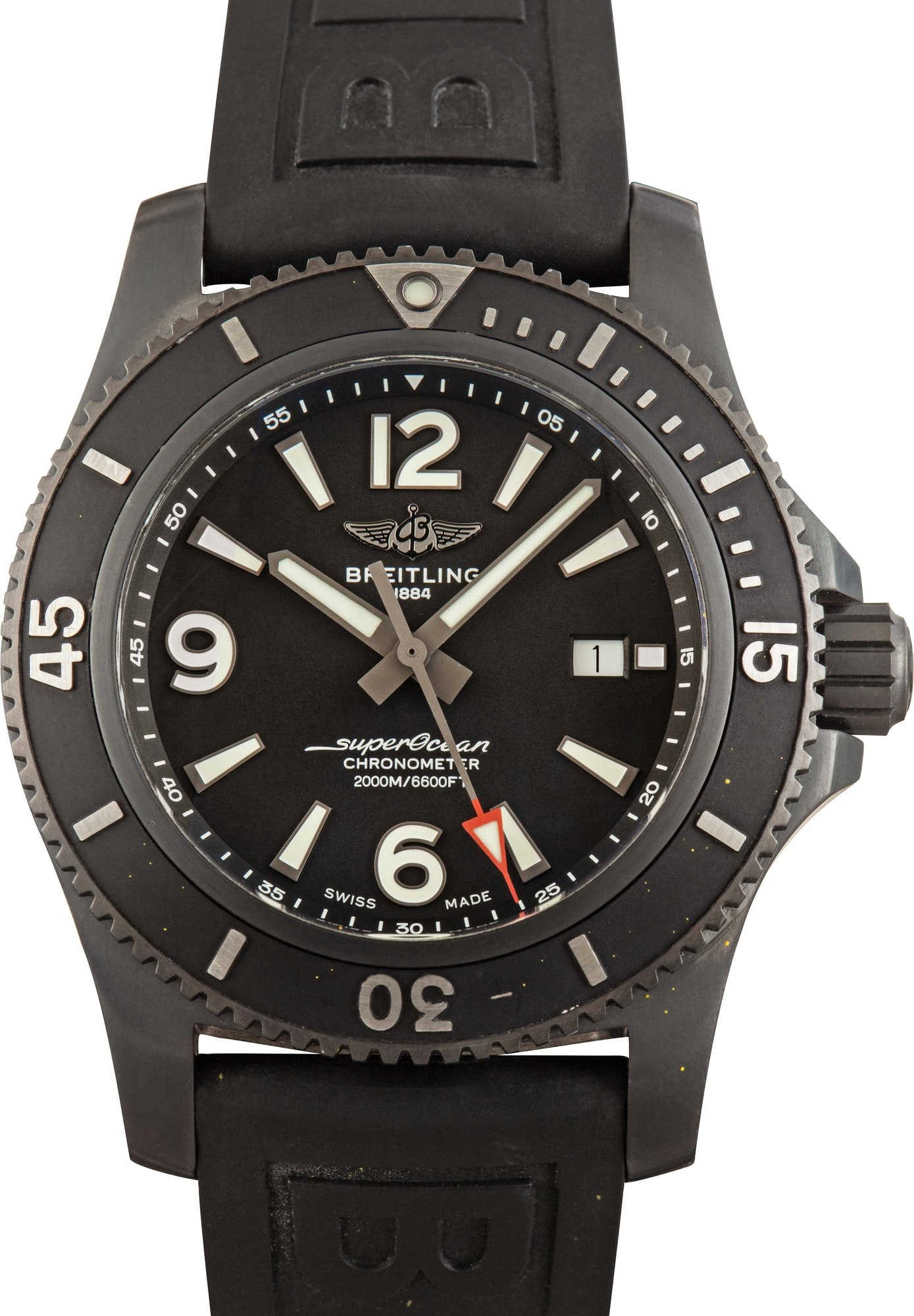 This , unpolished Breitling Superocean 46 (ref. M17368B71B1S1) is built for adventure with a 2000-meter water resistance, COSC-certified Breitling Caliber 17 movement, and a durable black stainless steel case. The black dial, luminescent hands, and unidirectional rotating bezel make it ideal for diving, while the 38-hour power reserve ensures reliability.
