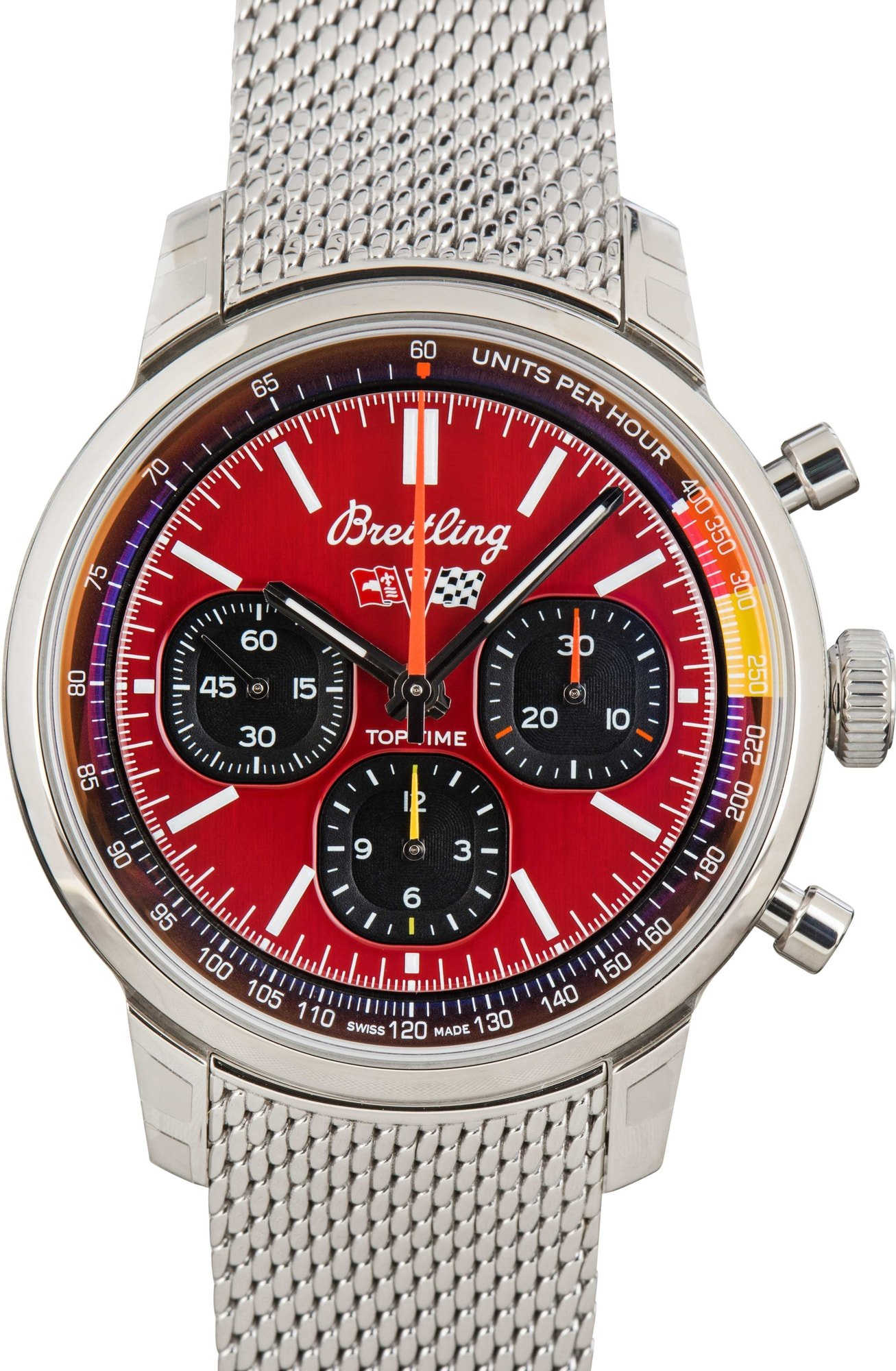 This unworn Breitling Top Time B01 Chevrolet Corvette channels serious vintage muscle car energy into a sleek, modern chronograph. Bold in red with racing-inspired sub-dials and a nod to the classic Corvette emblem, this 41mm stainless steel watch packs a powerful in-house B01 movement with a 70-hour power reserve and high-performance chronograph functionality—all wrapped in a retro-cool package that’s ready for the road.