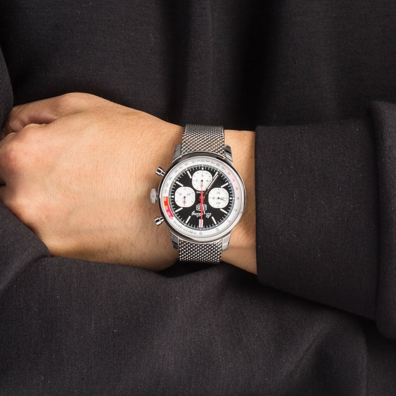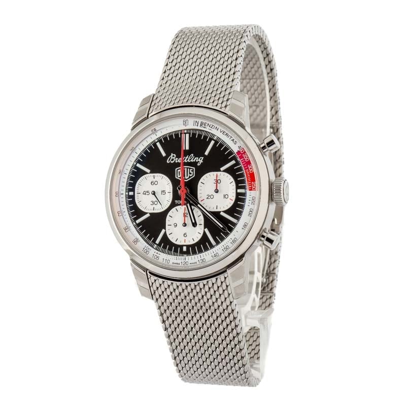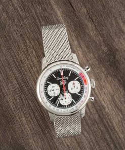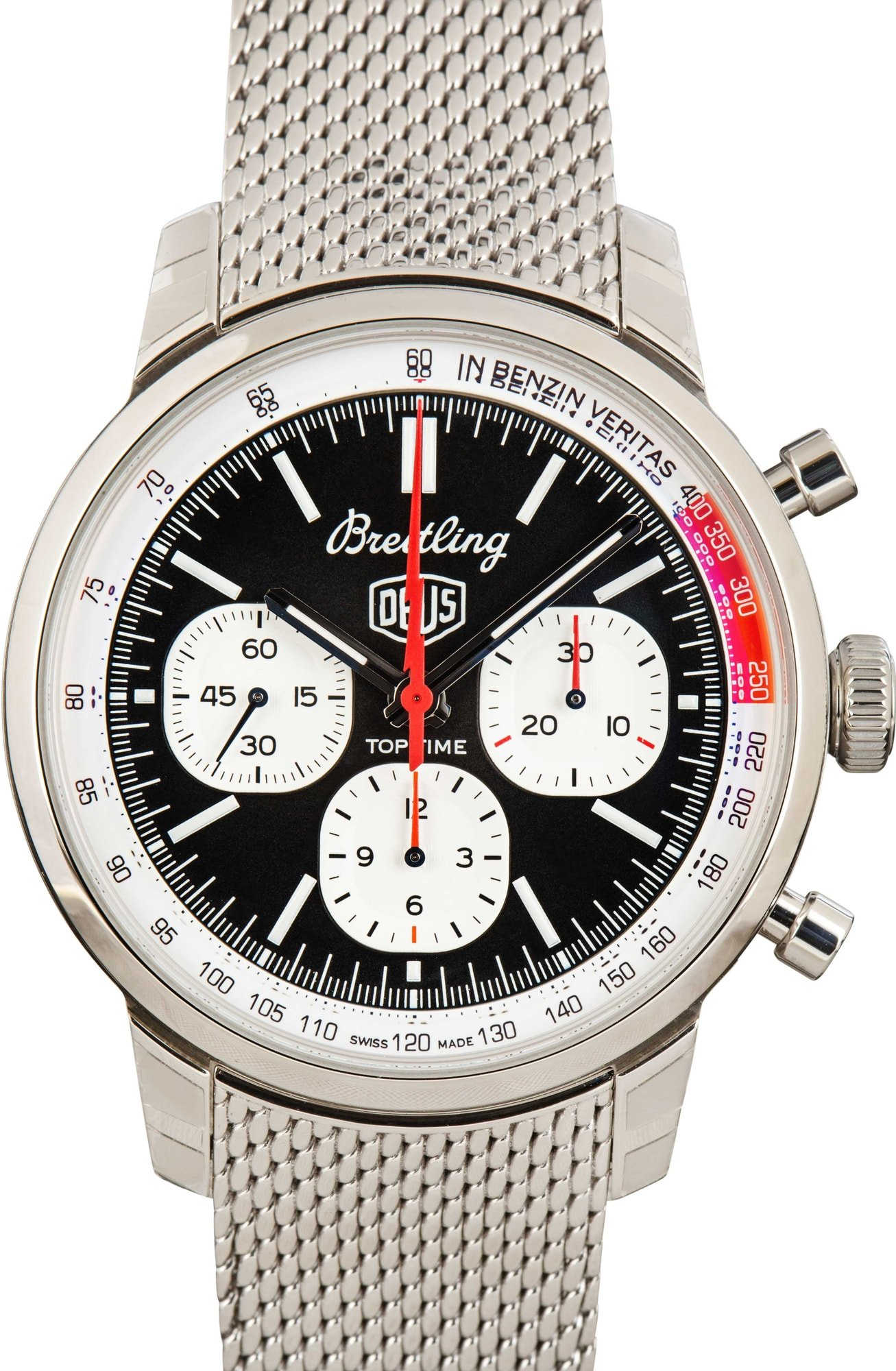 This unworn Breitling Top Time B01 Deus is built for the bold, channeling the free-spirited energy of Deus Ex Machina’s world of motorcycles, surf, and adventure. A stealthy black dial with vintage cream sub-dials and pops of red gives it serious retro-café racer vibes, while the high-performance in-house B01 movement delivers 70 hours of power and rock-solid chronograph precision. It’s a rebellious twist on classic style—perfect for those who live fast and ride free.