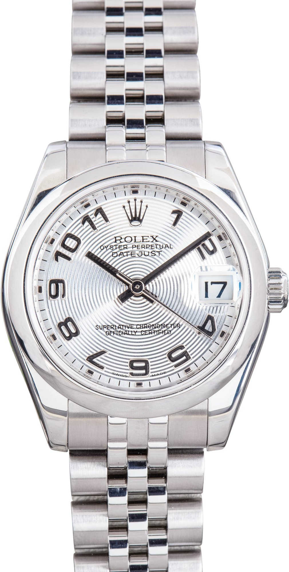 This elegant 31 mm Datejust brings together refined simplicity and timeless function with its crisp silver concentric dial marked by bold Arabic numerals, paired seamlessly with a smooth steel bezel and classic Jubilee bracelet. Powered by calibre 2235, this model offers precision in a compact and versatile size—perfect for everyday elegance with distinctive character.
