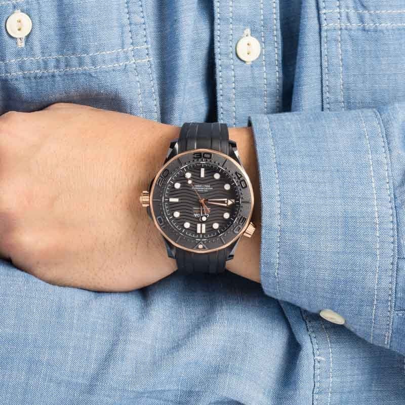 Imagine the statement you’ll make with this Omega Seamaster Diver 300M ref 210.62.44.20.01.001. The 43.5MM steel and Sedna gold case, paired with a black wave dial and comfortable rubber strap, exudes both luxury and adventure. Complete with box and papers, this watch is perfect for those who appreciate fine craftsmanship and a bold, refined style.