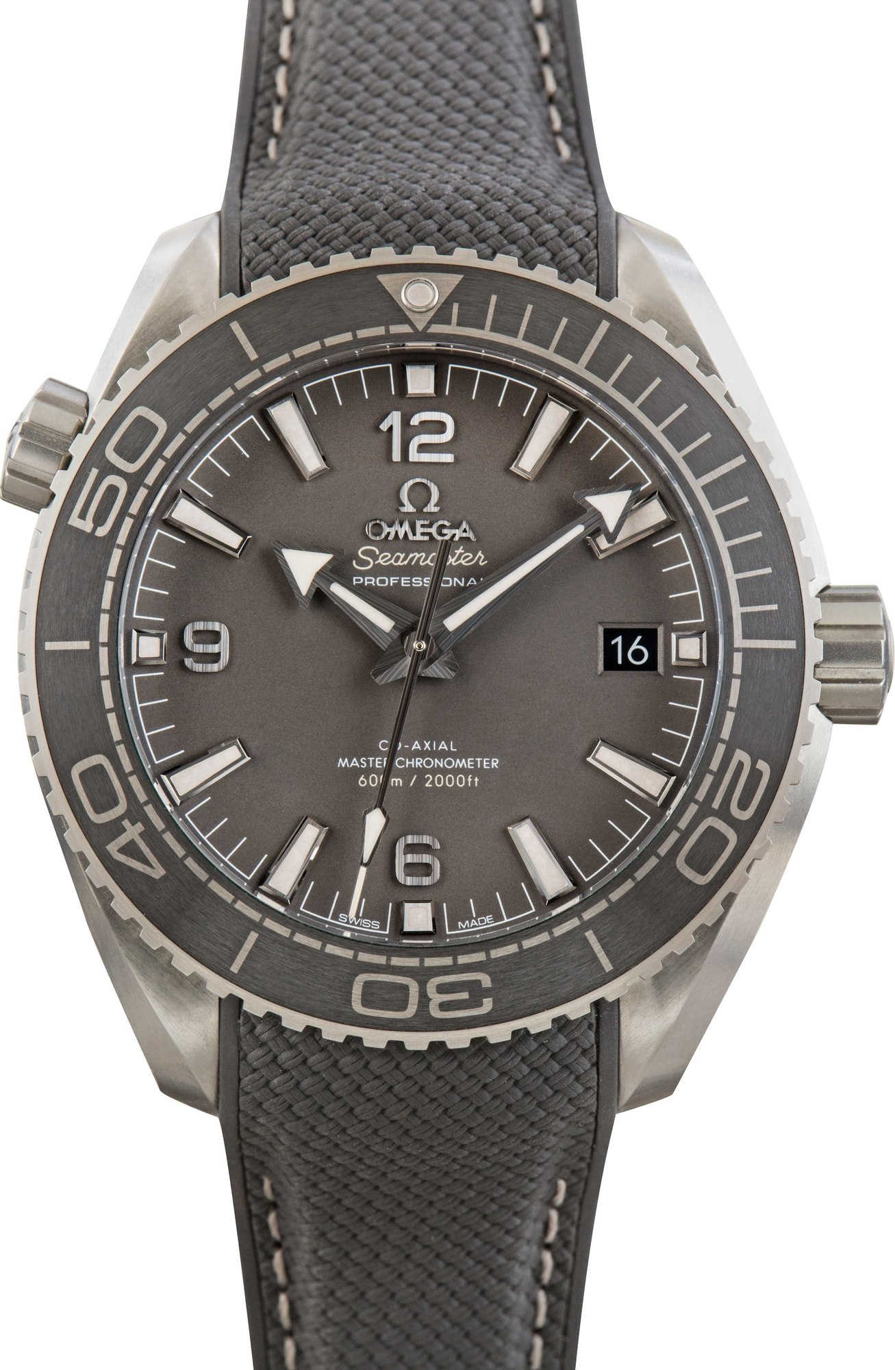 This Omega Seamaster Planet Ocean 600M ref. 215.32.44.21.01.002 (2022) honors OMEGA’s dive watch heritage with modern design and advanced precision. Its 43.5mm brushed stainless steel case features a black ceramic bezel with a Liquidmetal diving scale, paired with a sand-blasted “gunmetal” grey galvanic dial. Arabic numerals, hands, and hour markers in PVD stainless steel are complemented by beige Super-LumiNova for enhanced legibility, and a date window sits at 3 o’clock. Powered by the Co-Axial Master Chronometer Calibre 8900, visible through the NAIAD LOCK sapphire caseback, this Planet Ocean combines exceptional accuracy with durability. Finished with an integrated dark grey rubber strap accented by beige and grey stitching, it balances sporty versatility with sophisticated style.