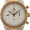 A tribute to the iconic 1957 original, this 2017 Omega Speedmaster ’57 blends vintage inspiration with modern innovation. Its 41.5mm case, crafted from luxurious 18K red gold, frames a silvery dial with bold sub-dials, a central chronograph seconds hand, and a date window at 6 o’clock—all protected by a scratch-resistant sapphire crystal. The brushed bezel, featuring a tachymeter scale, reinforces its racing heritage, while the Co-Axial calibre 9301 ensures unparalleled precision. Completed by a matching red gold bracelet, this Speedmaster is a statement of history, performance, and timeless elegance.