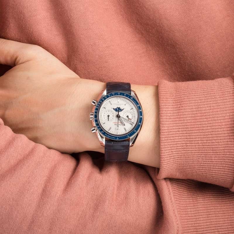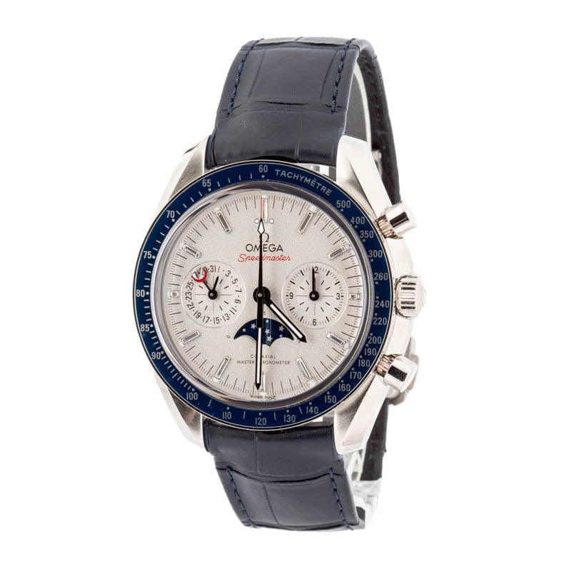 A masterpiece of horology, this Omega Speedmaster Moonphase ref. 304.93.44.52.99.004 elevates the legendary Moonwatch with a striking platinum case and a sophisticated grey dial. Powered by the Omega 9905 self-winding movement with a 60-hour power reserve, this timepiece offers both precision and prestige. The scratch-resistant sapphire crystal ensures clarity, while 100m water resistance adds durability. A statement of refinement and innovation, this Speedmaster Moonphase is the perfect companion for collectors who appreciate rarity and excellence.