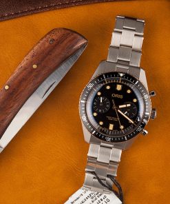Case Material: Stainless Steel Crystal: Sapphire Size: 43MM Bezel: Bronze Timing Caseback: Solid Dial: Black w/ Luminous hour markers, Luminous hands & Luminous lume