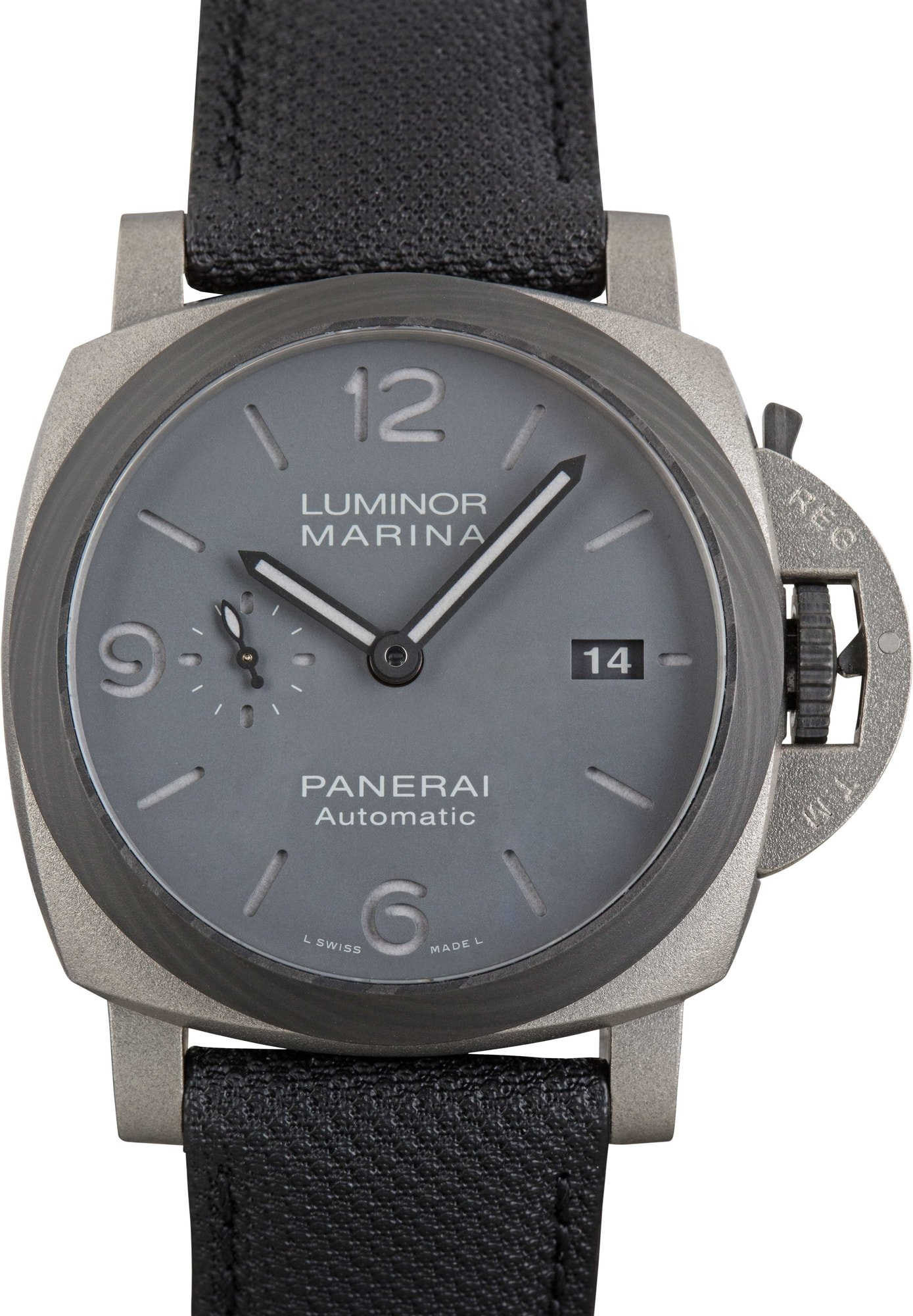 This Panerai Luminor Marina TuttoGrigio ref. PAM01662 (2020) combines modern materials with a sleek monochromatic design. Featuring a lightweight Carbotech bezel, grey dial with luminous hands, and Arabic numerals at 6, 9, and 12 o’clock, it offers a bold yet refined aesthetic. A small seconds sub-dial at 9 o’clock and a date window at 3 o’clock enhance functionality, while the automatic P.9010 movement delivers a 3-day power reserve. Secured by a black canvas / leather strap with a titanium tang buckle, this timepiece embodies Panerai’s signature blend of rugged sophistication and contemporary style.