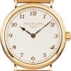 This Patek Philippe Calatrava Pilot Travel Time ref. 7234G-001 (2022) features a 37.5mm white gold case, dual-time zone complication with local and home time, day/night indicators, and a date display at 6 o’clock. The striking blue dial with luminescent Arabic numerals and gold hands ensures easy legibility, while the Caliber 324 S C FUS automatic movement provides reliable precision with a 45-hour power reserve. Paired with a robust leather strap, this Calatrava perfectly blends sporty elegance with Patek Philippe’s renowned craftsmanship, making it an ideal choice for collectors seeking a modern travel watch with timeless appeal.