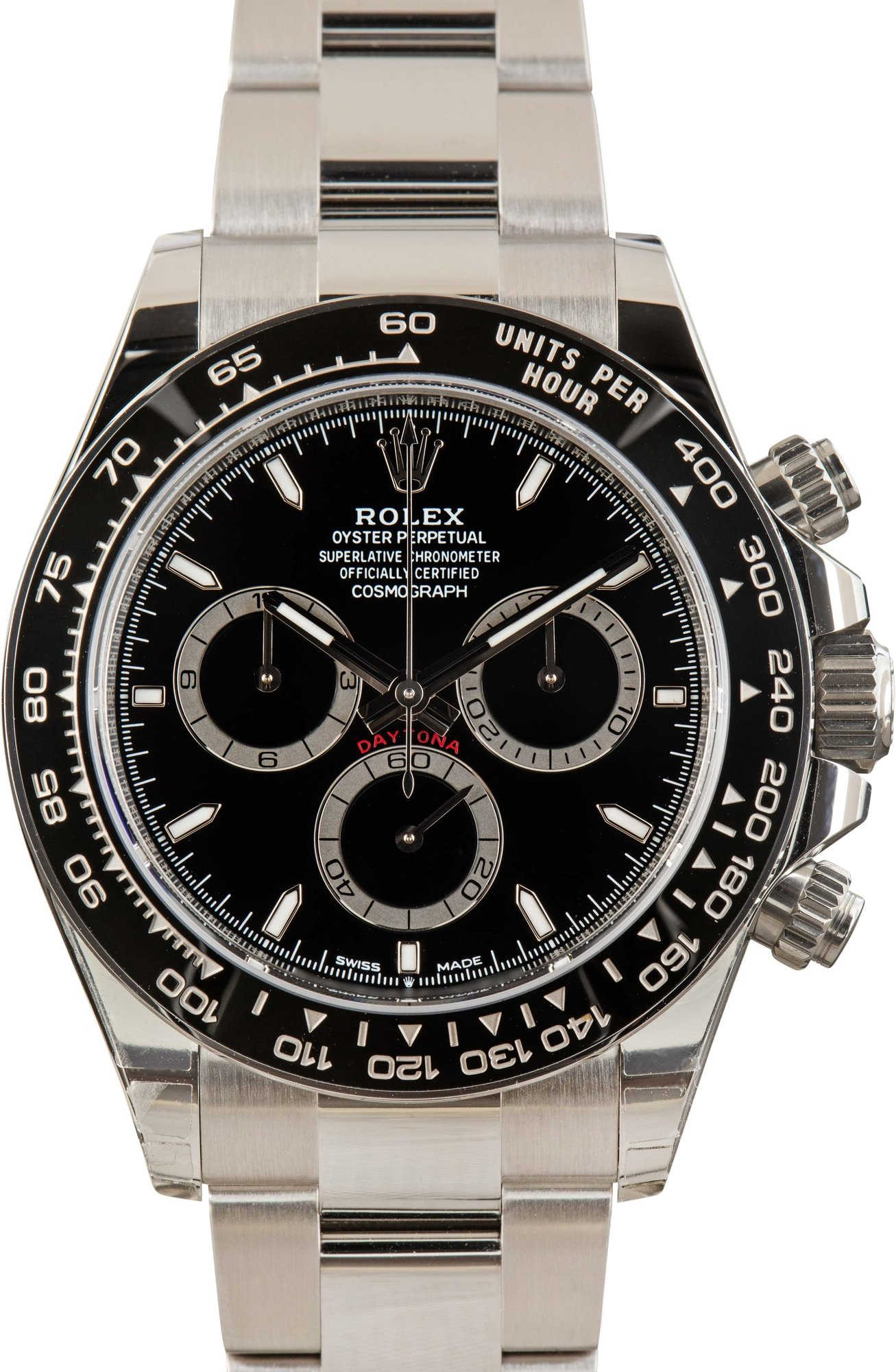 This Rolex Daytona ref. 126500 (2024) embodies the perfect fusion of precision, performance, and prestige. Crafted from 40mm stainless steel, it features a striking black dial with luminous hour markers protected by a scratch-resistant sapphire crystal. The engraved tachymeter bezel underscores its racing heritage, designed for measuring speed with absolute accuracy. Powered by the self-winding Caliber 4131, this chronograph delivers exceptional reliability and a 72-hour power reserve. Finished with a robust Oyster bracelet, this Daytona stands as a symbol of sport and sophistication—an enduring icon coveted by collectors and enthusiasts alike.