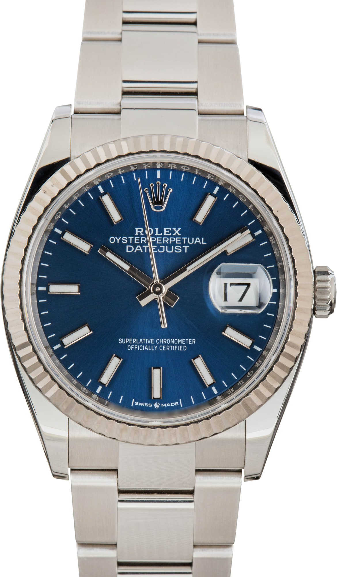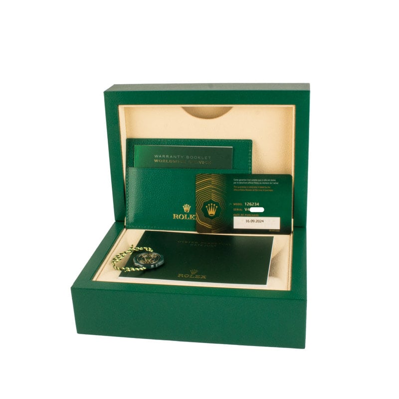 A timeless icon with a modern touch, this Rolex Datejust ref. 126234 (2024) exudes sophistication. Its striking blue dial, adorned with luminous hour markers, is housed in a 36mm Oystersteel case with an elegant 18k white gold fluted bezel. Powered by the Rolex Caliber 3235, this classic timepiece offers a 70-hour power reserve and exceptional precision. Versatile and refined, this Datejust is the perfect blend of heritage and contemporary style.