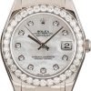This Rolex Datejust Pearlmaster 34 ref. 81298 (2015) is a luxurious and elegant timepiece, crafted in 18k yellow gold. The 34mm case houses a stunning mother-of-pearl Roman dial, which exudes a soft, iridescent charm. The watch is further enhanced by a dazzling diamond bezel, adding a touch of brilliance to its refined design. The signature Pearlmaster bracelet, also in 18k yellow gold, offers exceptional comfort and sophistication. This exquisite timepiece seamlessly blends Rolex’s iconic craftsmanship with opulent details, making it a perfect choice for those seeking both beauty and precision in a truly exclusive watch.
