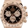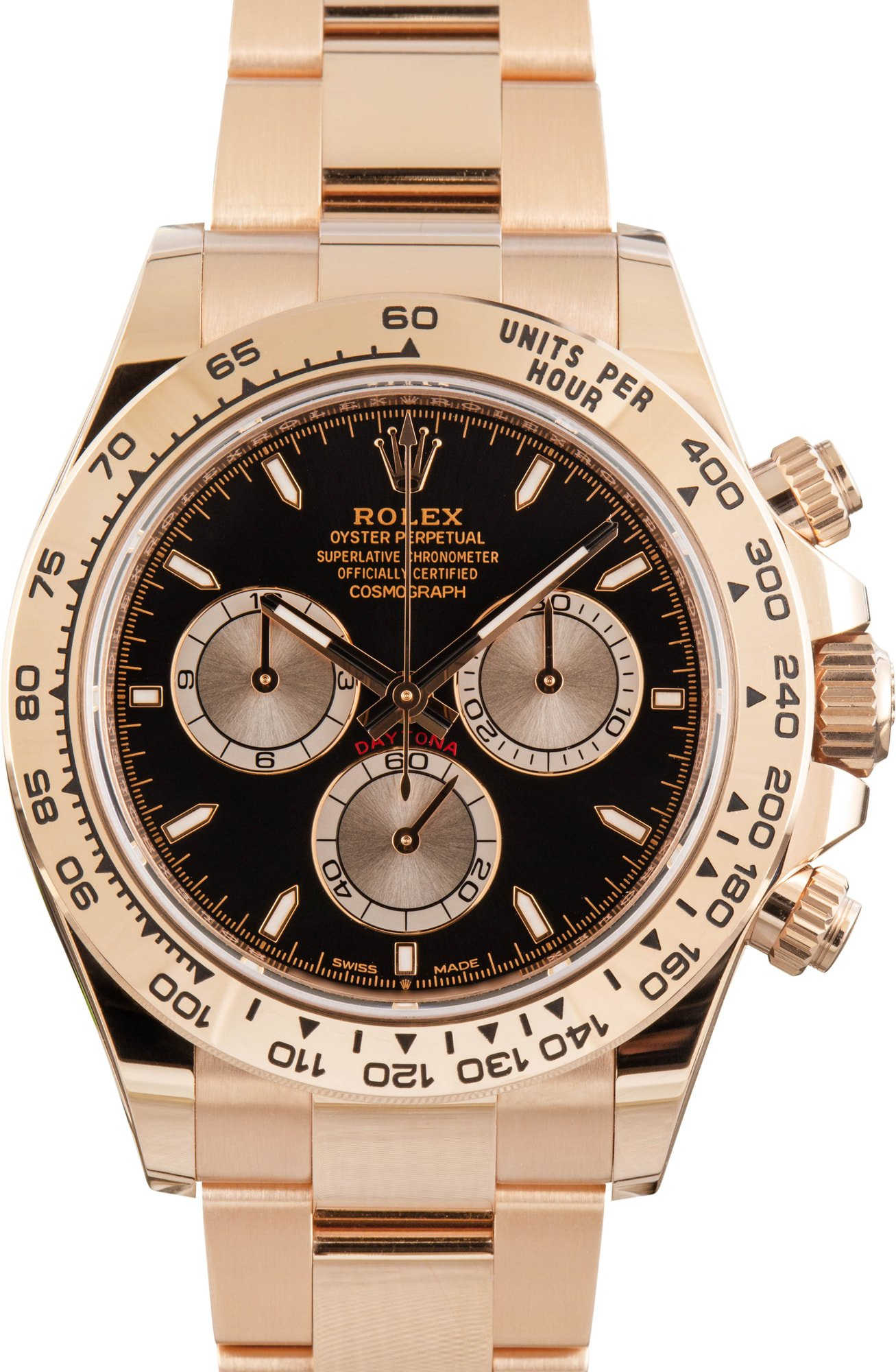 Bold and uncompromising, the 2024 Rolex Daytona ref. 126505 makes a powerful statement in 18k Everose gold. Its 40mm case houses a deep black dial with prominent sub-dials and a robust tachymeter bezel built for precision timing. Powered by the advanced Caliber 4131, this chronograph delivers strength and reliability at every turn. Finished with a solid Oyster bracelet, it combines rugged performance with refined luxury—an unmistakable watch for serious collectors.