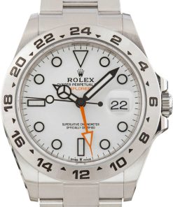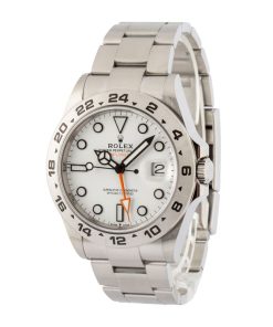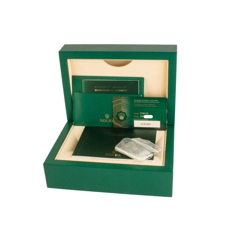 This Rolex Explorer II ref. 226570 (2021) is the epitome of resilience, precision, and purposeful design. Encased in a robust 42mm Oystersteel case, it exudes both strength and elegance, built to endure the most demanding adventures. Its striking white Chromalight dial, accented with bold hands and luminous markers, guarantees impeccable legibility in any light. At its heart lies Rolex’s Caliber 3285, delivering a 70-hour power reserve, extraordinary accuracy, and seamless dual time zone functionality. Designed for explorers and visionaries alike, this Explorer II is a commanding testament to Rolex’s mastery of watchmaking, blending technical excellence with timeless sophistication.