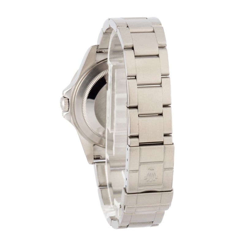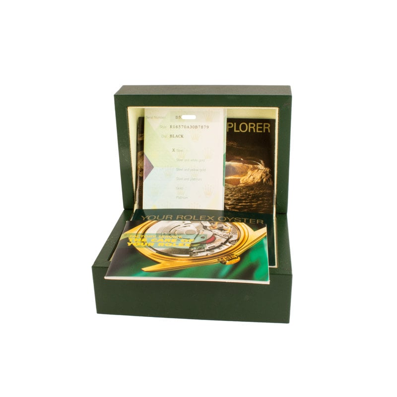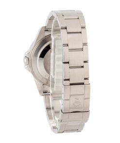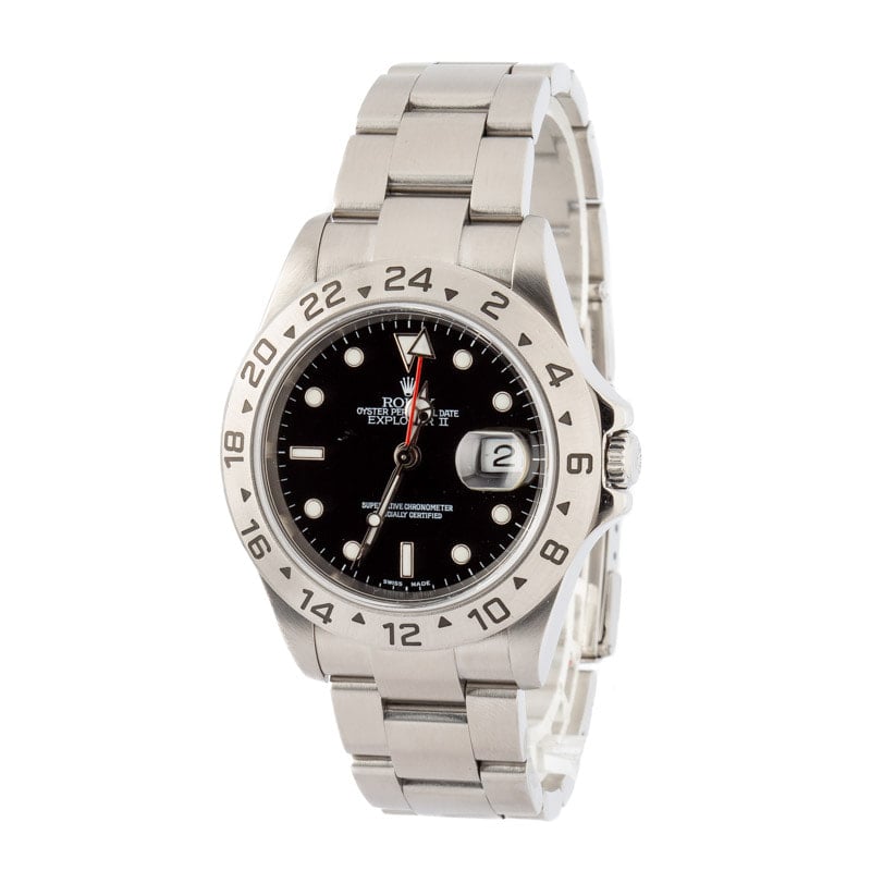 This Rolex Explorer II ref 16570 (2005 – 2006) features a 40mm stainless steel case with a fixed GMT bezel. It showcases a black Superluminova dial and is paired with an Oyster bracelet. Powered by the 3185 movement, this model emphasizes durability and precision, ideal for adventurers.