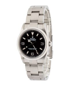 This Rolex Explorer ref. 114270 (2006 – 2007) is a classic icon, built for both adventure and everyday elegance. It features a 36mm stainless steel Oyster case paired with a black dial showcasing a 3, 6, 9 numerals and luminous Index hour markers. Powered by the Rolex Caliber 3130 automatic movement with approximately 48-hour power reserve, this Explorer delivers reliable precision and durability. The Oyster bracelet with folding Oysterlock clasp ensures comfort and security, making it equally at home on rugged trails or city streets—a timeless timepiece combining simplicity, performance, and Rolex’s legendary craftsmanship.