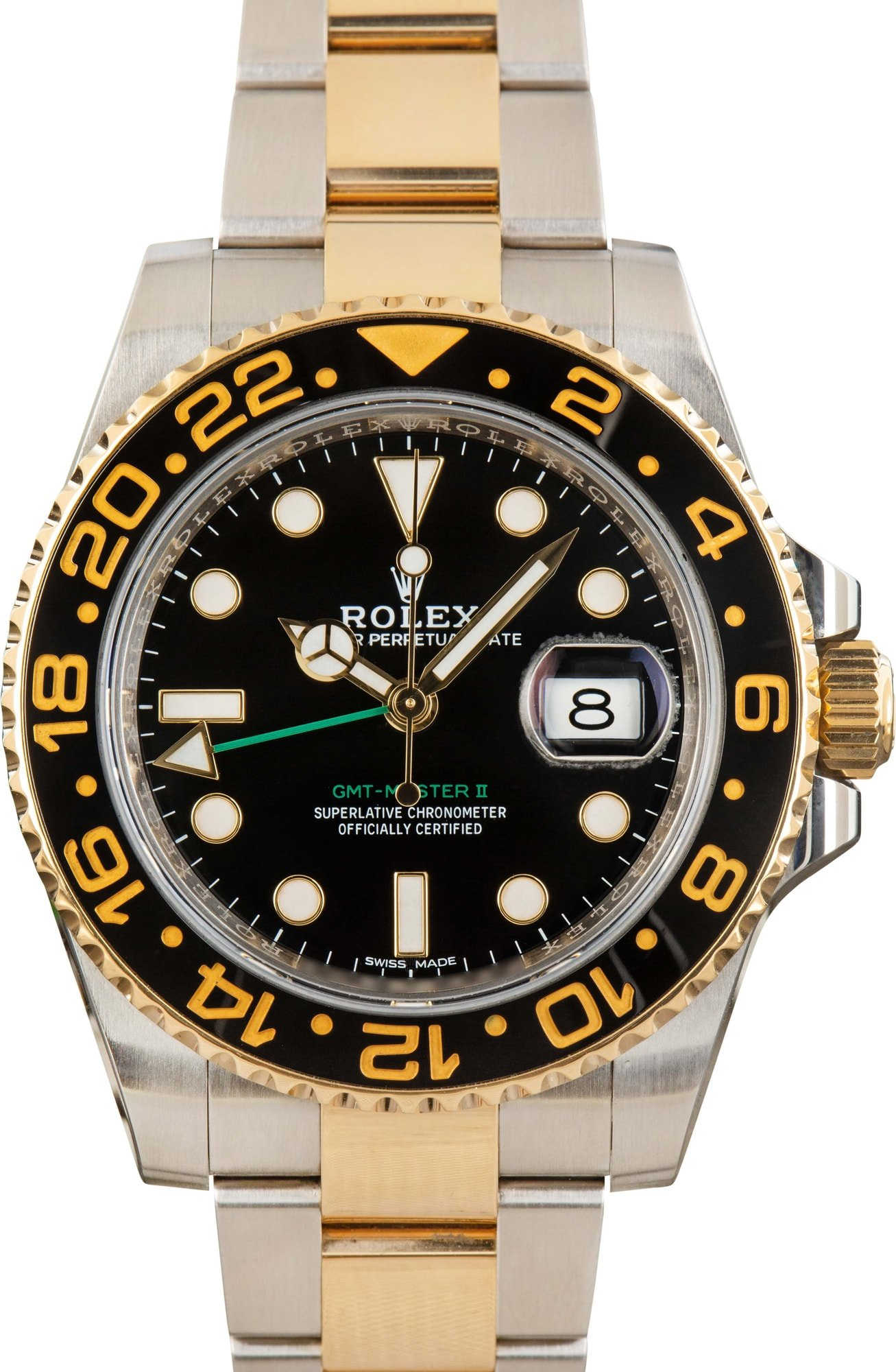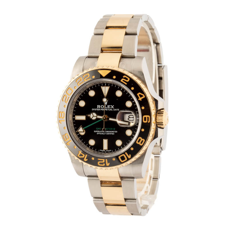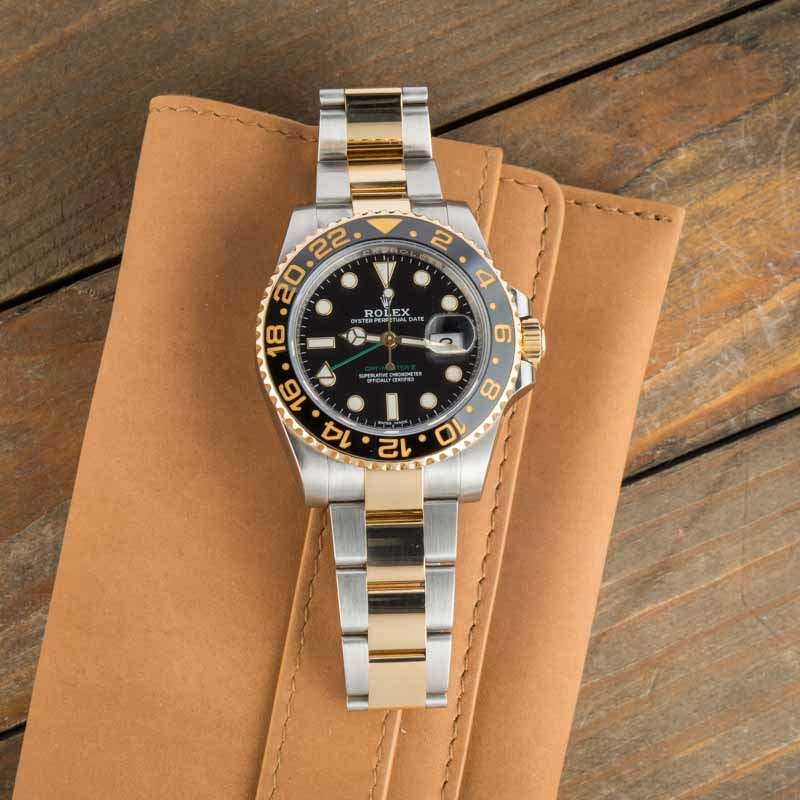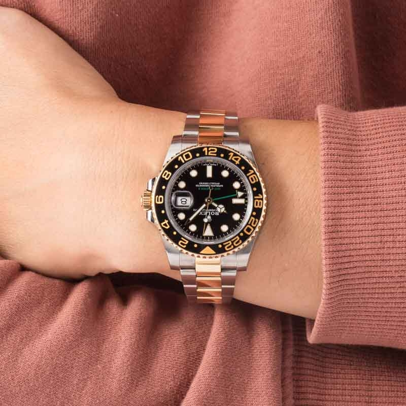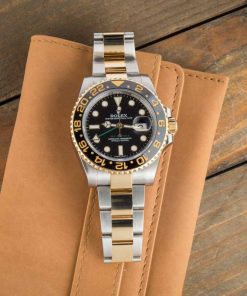 This Rolex GMT-Master II ref. 116713 (2011 – 2019) delivers iconic travel-ready style with a luxurious edge. Crafted from stainless steel and 18k yellow gold, this 40mm classic features a black Chromalight dial, bidirectional rotatable bezel, and a robust Oyster bracelet for all-day comfort and presence. Powered by the desirable Caliber 3186 movement, this model offers dual-time functionality with seamless precision — ideal for frequent flyers and collectors alike. Offered with box and papers, this two-tone GMT is a standout blend of utility, prestige, and unmistakable Rolex design.
