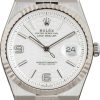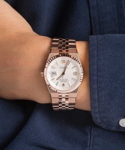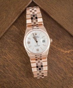 /Factory Stickered Rolex Land-Dweller 36 Ref. 127235 (2025) in 18 kt Everose gold exudes modern elegance with a striking intense white honeycomb-motif dial and signature fluted bezel. Precision-cut with a femtosecond laser, the dial features luminescent Chromalight numerals and hands for effortless readability. Its Flat Jubilee bracelet integrates seamlessly with the 36 mm Oyster case, alternating polished and satin finishes to create a flowing ribbon of light, secured by a concealed Crownclasp. Equipped with a scratch-resistant sapphire crystal, Cyclops lens, and waterproof to 100 m, this Land-Dweller 36 perfectly blends Rolex craftsmanship, innovation, and timeless luxury.